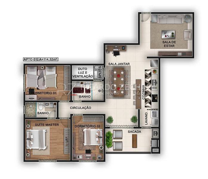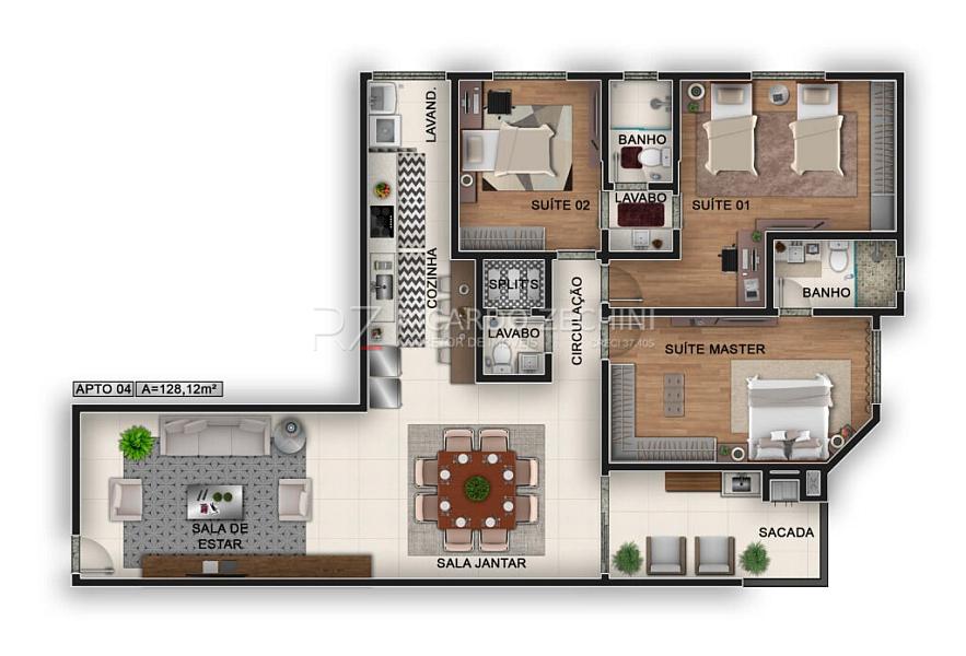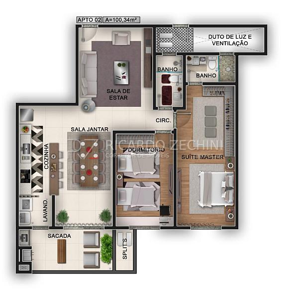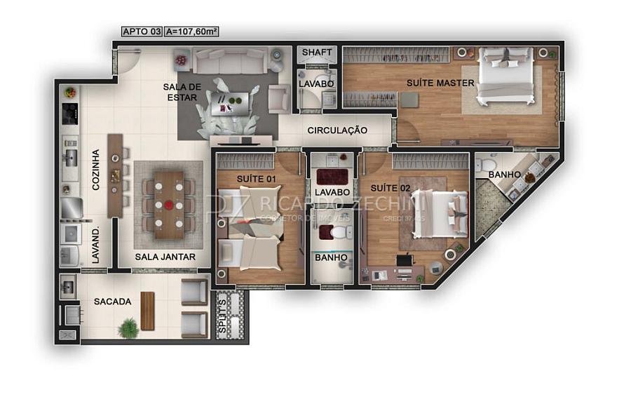 ● 103,88 m² de área total: Amplitude e funcionalidade.