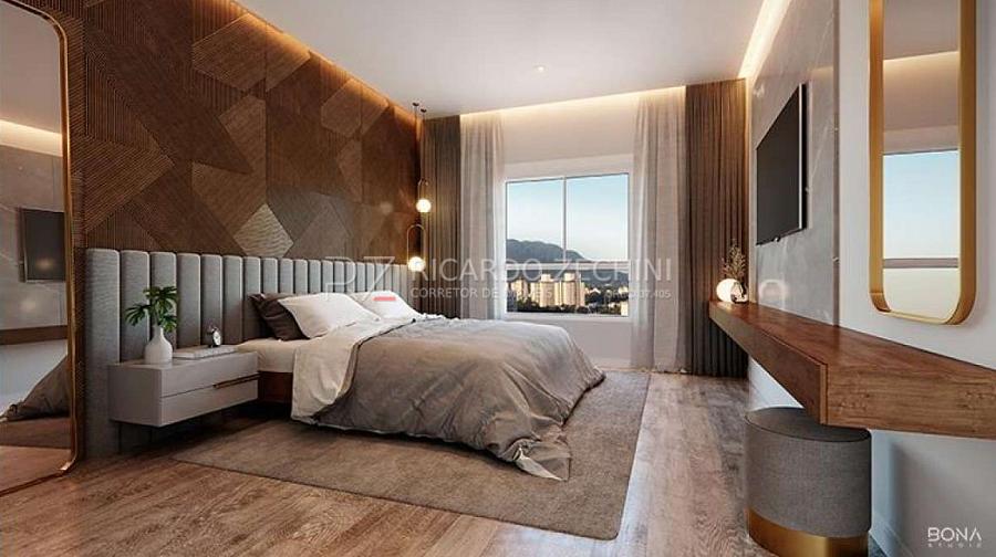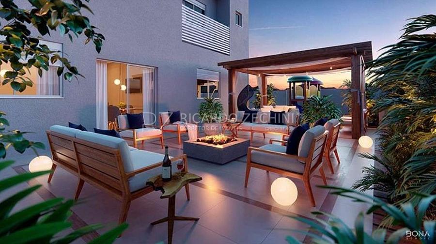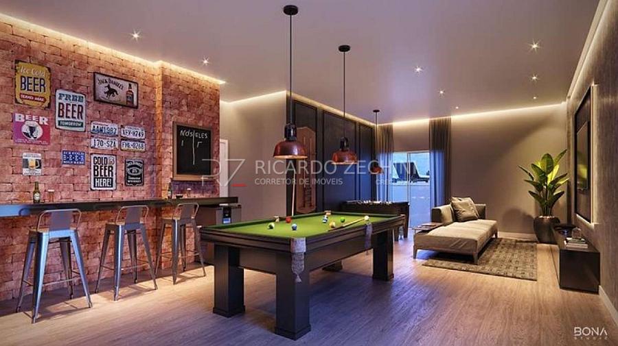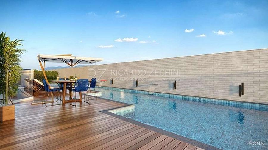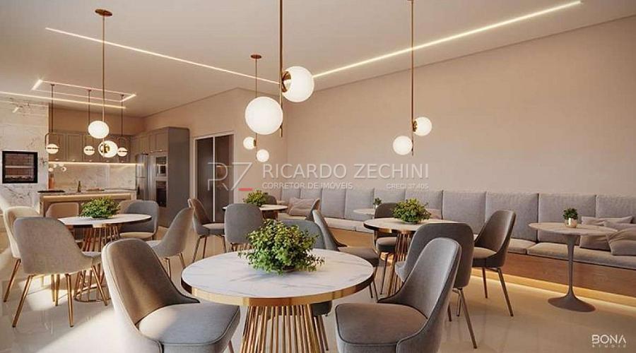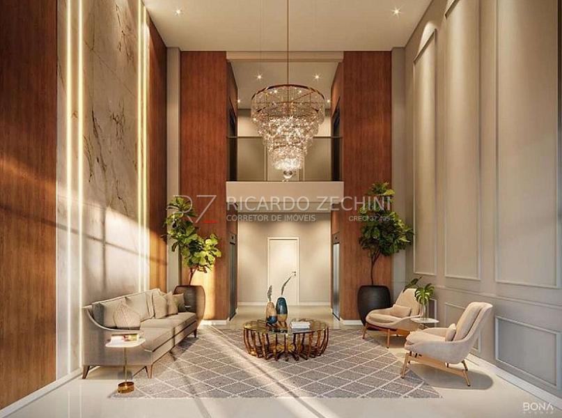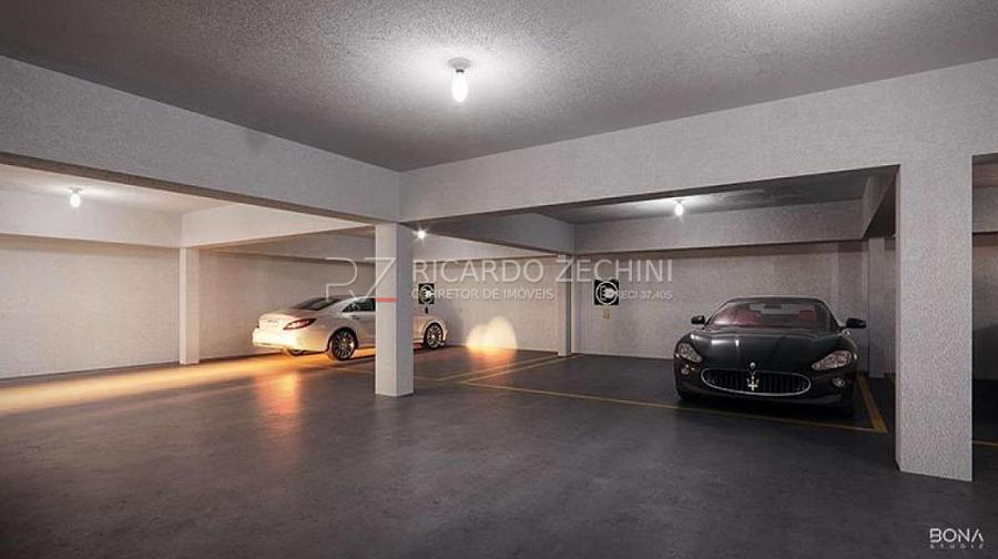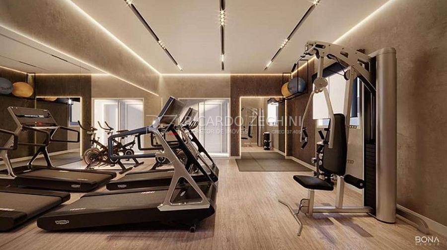 Os apartamentos possuem 3 suítes, vaga dupla de garagem, living, lavabo, área de serviço, fechadura biométrica, portas laqueadas, rebaixo de gesso, cortineiro, fechamento tipo "Reiki", churrasqueira a carvão, piso vinílico nos dormitórios e porcelanato nas demais áreas.