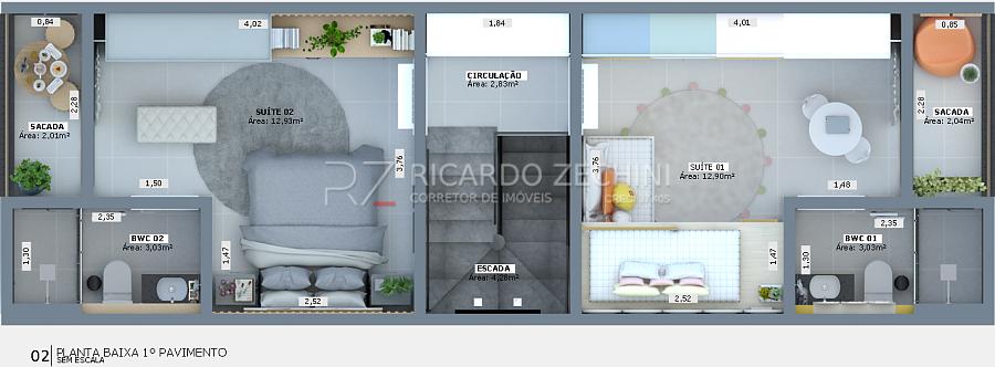- 2 Suítes espaçosas (12,90 m²) com sacada