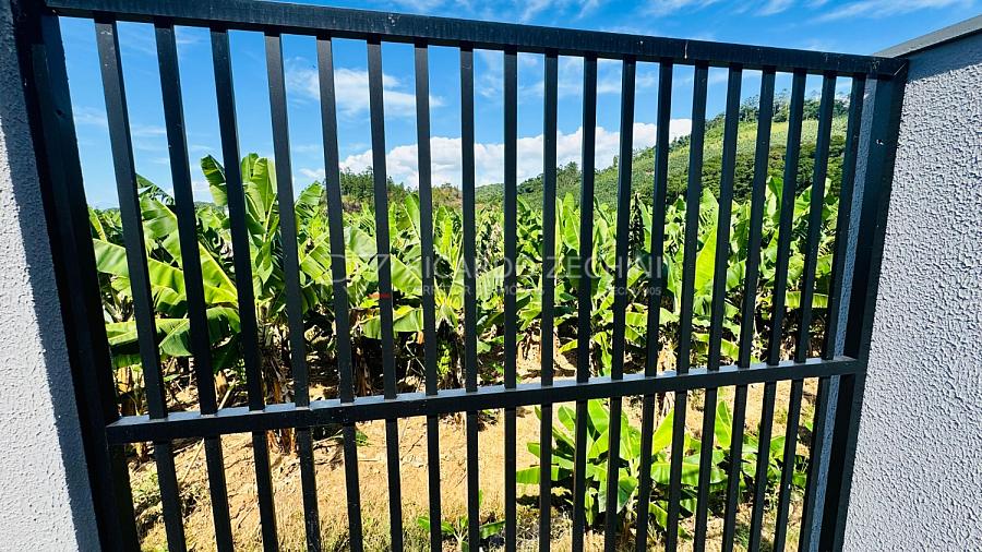 - Quintal nos fundos com grade aberta e canteiros
