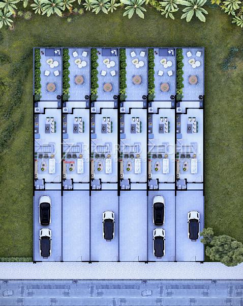 - Jardim e Garagem Frontal: 45,29 m² com vaga para 2 carros (em gaveta)